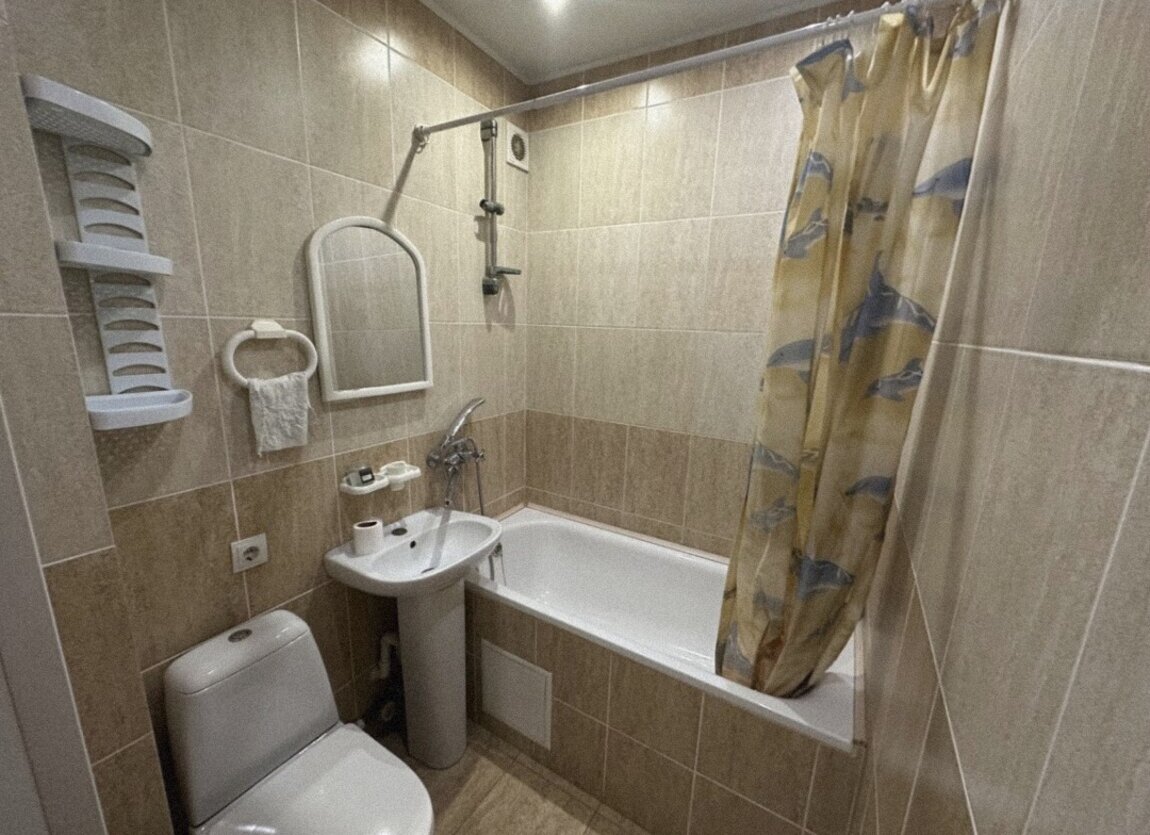 Санузел совмещён в кафеле