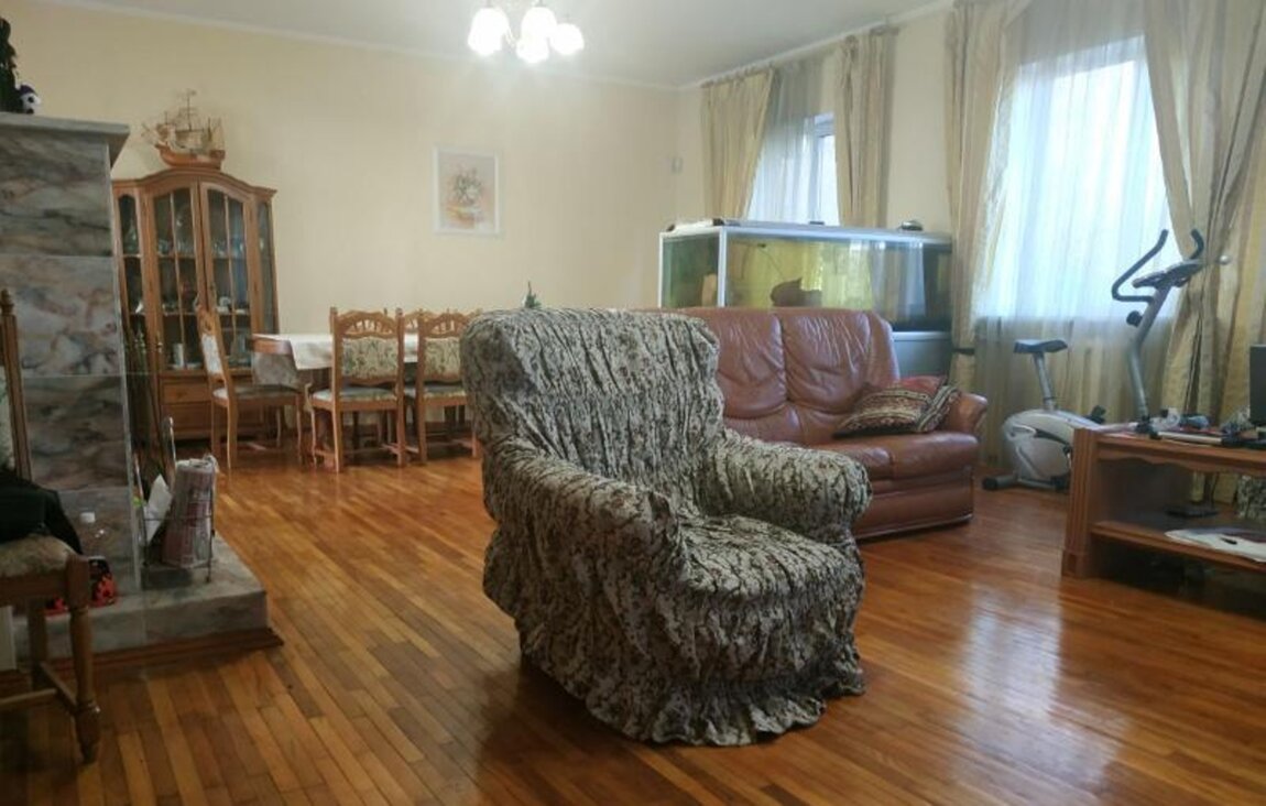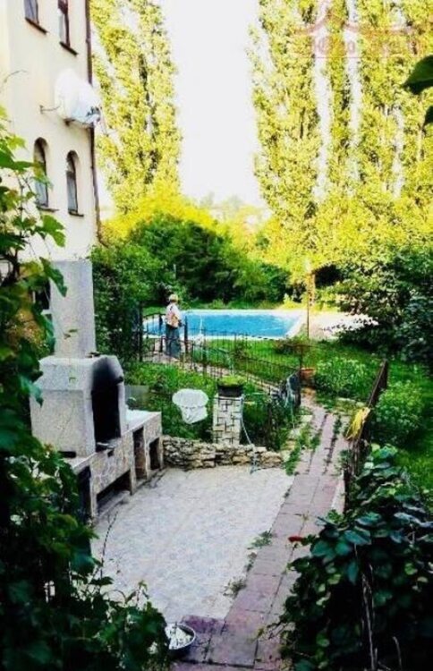 №1021. . Продам дом для большой семьи с благоустроенным участком и бассейном. Дом из ракушечника и кирпича, утеплен мин. ватой, отштукатурен и обложен камнем от короеда. Крыша металлочерепица. Общая площадь дома и всех строений 600 кв. метровВ доме 2 входа, прекрасный вариант для семьи в несколько поколений. В доме 8 комнат из них 5 спален, 4 санузла, 2 кухни, камин, сауна, баня, под домом гараж и зона хранения. Хорошее жилое состояние, теплый пол. Остается встроенная мебель. Есть 2 гаража и во дворе место на 2 авто. Мастерская над гаражом, вольер для большой собаки. Площадь участка 16 соток, на которой есть бассейн, зона отдыха, мангал, разнообразные, зеленые насаждения и пышная ель в том числе.