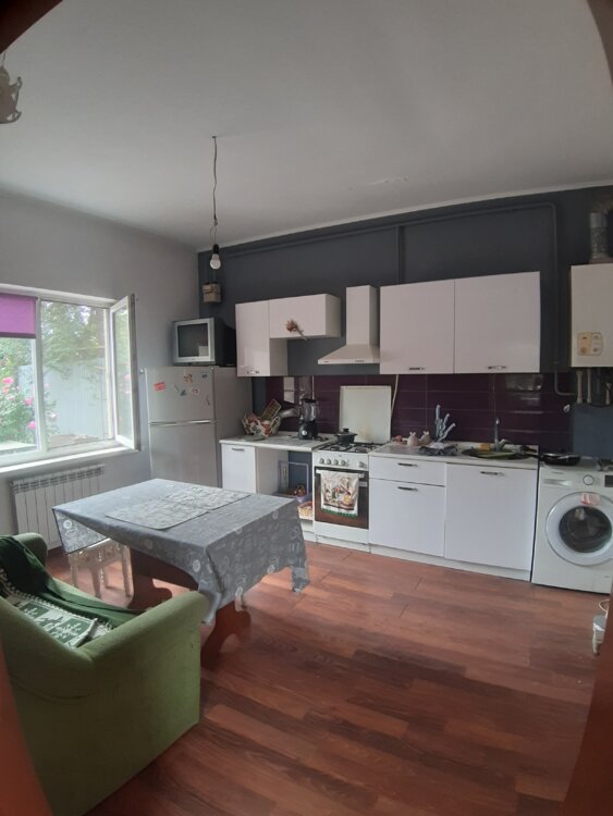 В доме 3 спальни, гостиная, 2 санузла, просторная кухня, терраса, мансарда, просторный двор и гараж.
