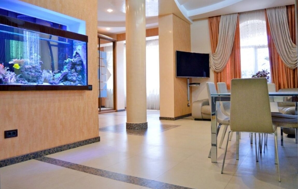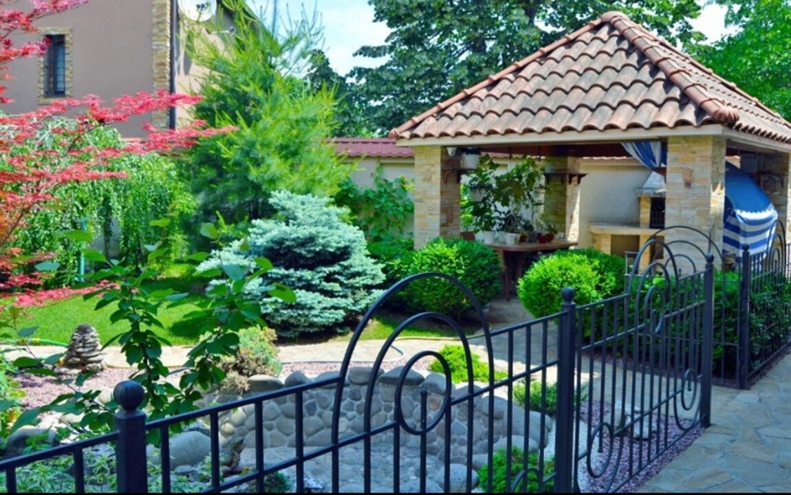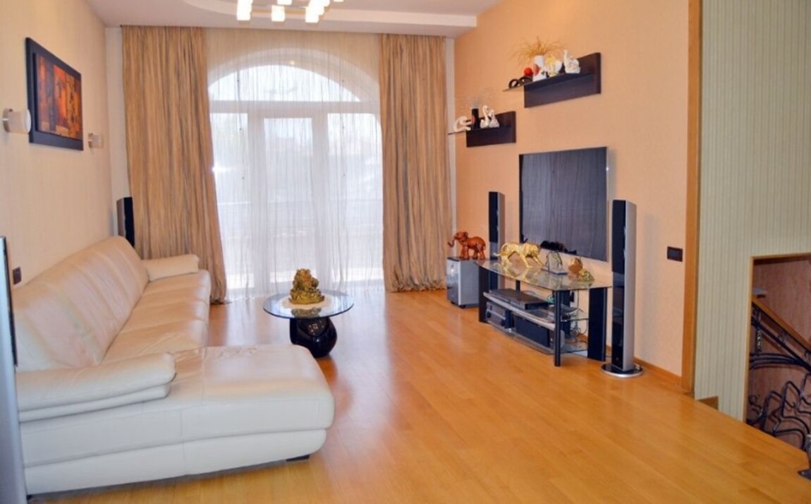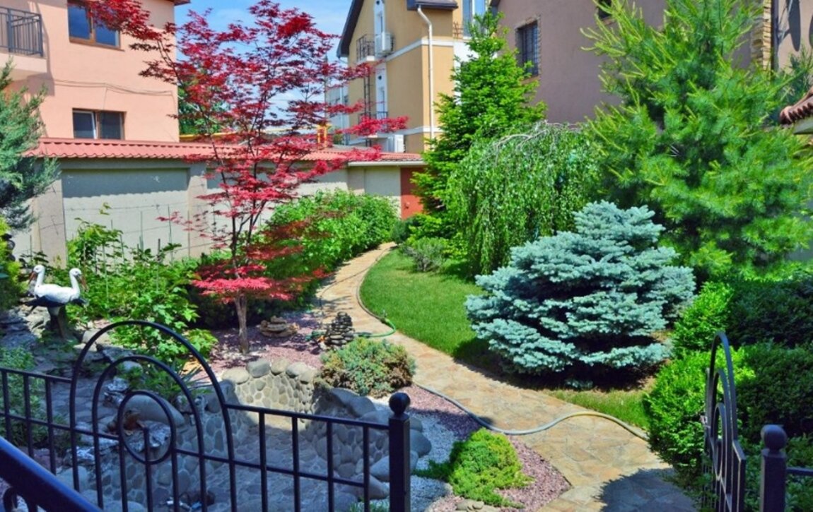 15904 Продам 3-х этажный дом с дорогим ремонтом возле пляжа "Золотой Берег" на участке 6 соток. Дом построен из экологических материалов, красного кирпича, натуральной испанской черепицы.Мраморная лестница с ковкой, фасад и забор вокруг дома отделан мраморной крошкой. Все дорожки, подъезд к дому сделаны из натурального камня. На территории дома: два действующих водопада, барбекю, большая беседка. Большой розарий, хвойные деревья, фитодизайн участка.Цоколь: находится большой тренажёрный зал с бильярдной, постирочная, отдельно сушилка, котельная и бойлерная (есть гидрофор с запасом воды на 1000 л.). Подсобное помещение. На полу итальянская плитка. 1 этаж: состоит из кухни-студии, большой прихожей и 2 санузлов. На полу итальянская плитка с подогревом, тёплый пол. Вся подсветка - Италия. Высота потолков - 3,20 м. Многоуровневые потолки с точечным освещением. Украшением кухни-студии является большой морской аквариум на 800 л. 2 этаж: состоит из просторной гостиной, кинозала и кабинета. Высота потолков - 3,10 м. На полу натуральный дубовый паркет. В гостиной - панорамные окна с выходом на террасу. 3 этаж: состоит из 3 спален, 2 санузлов и гардеробной. На полу натуральный паркет Мербау. Высота потолков - 3 м. Из двух спален выход на панорамную лоджию, из третьей спальни с панорамными окнами выход на балкон.Видеонаблюдение, сигнализация. К морю (пляж "Золотой Берег") - 700 м.