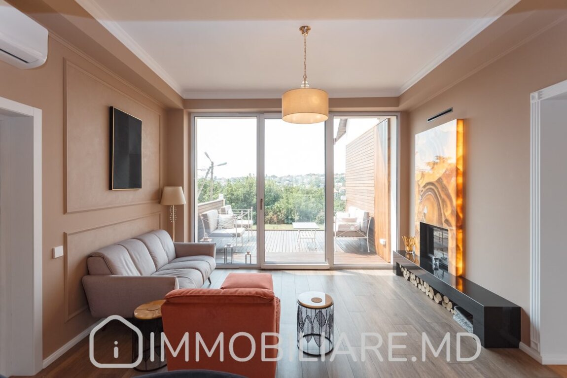 Casă cu 3 niveluri, sect. Centru Vă propunem spre vânzare casă cu 3 niveluri amplasată pe un teren de 6 ari, sect. Centru, str. Colina Verde. Zonă cu infrastructură bine dezvoltată. Acces facil la transportul public în orice direcție a orașului. Suprafața totală de 500 mp. Casa dispune de: – aparat de aer condiționat;, – încălzire prin pardoseală;, – geamuri termopan;, – subsol;, – șemineu; – toată mobila și tehnica necesară pentru un trai confortabil. Facilități: – supraveghere video; – teritoriu cu acces limitat și controlat; – locuri de parcare amenajate; – terasă pentru zonă de barbeque.