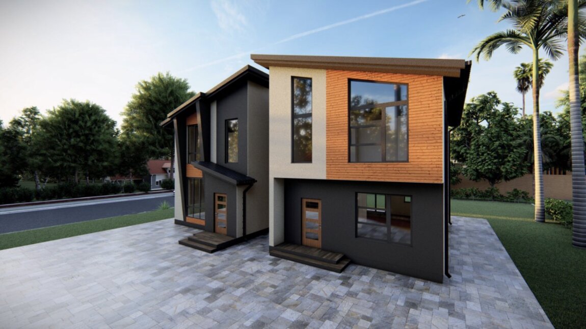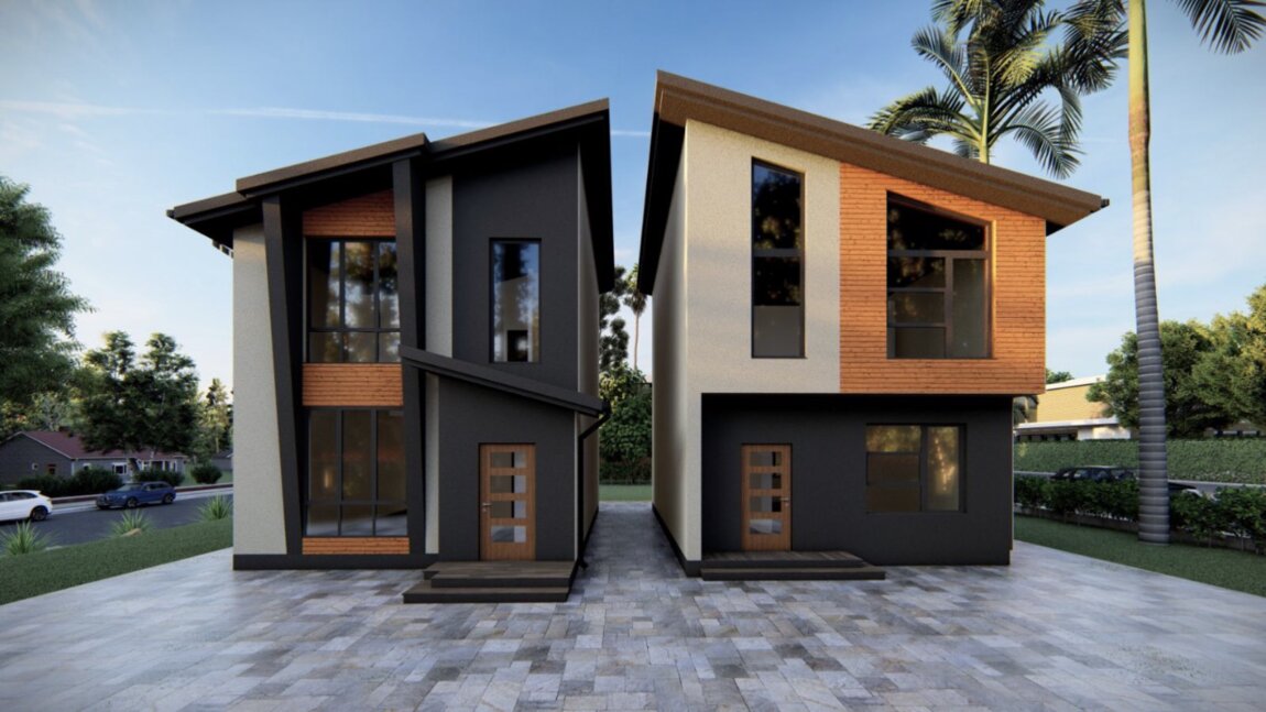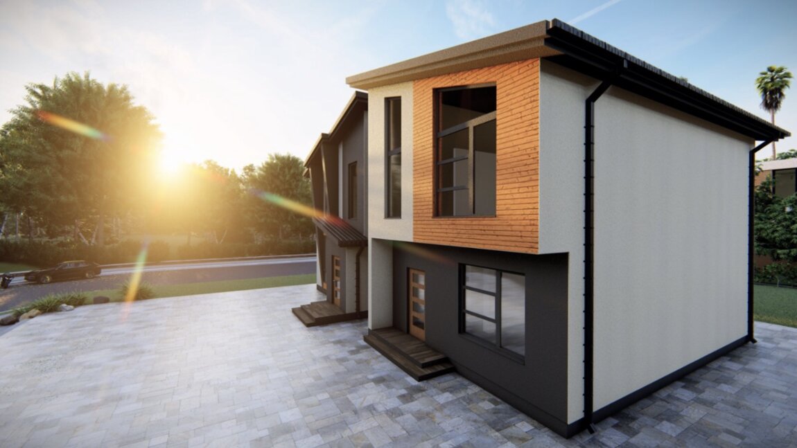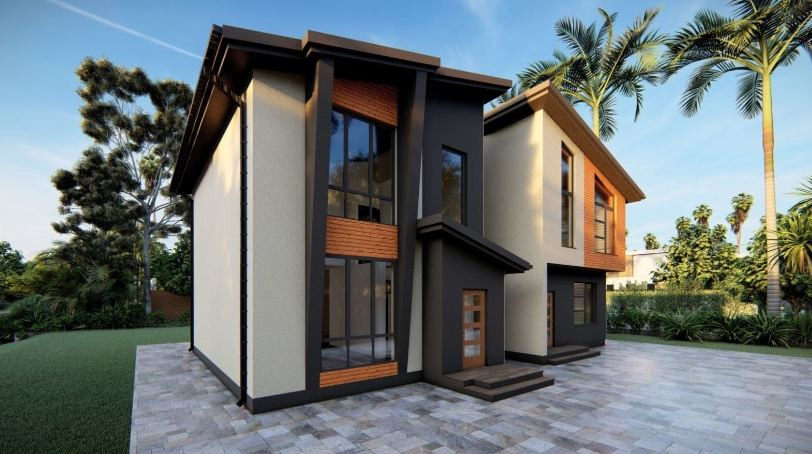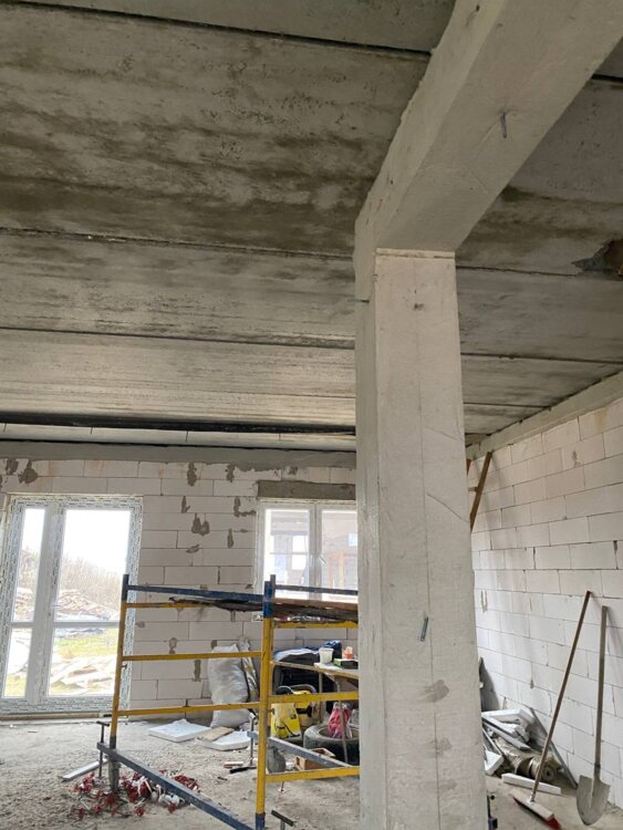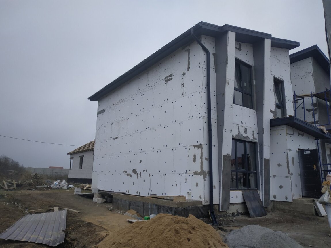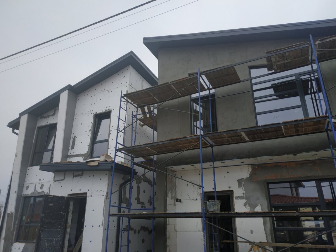Новый, компактный дом на этапе строительства.