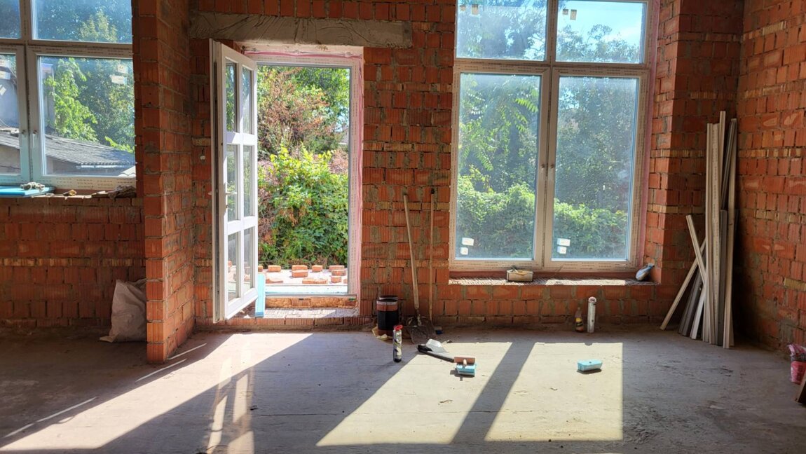 Первый этаж - гардеробная, санузел, кабинет, гостиная, кухня, гостевая спальня.Перекрытия (пол, потолок), монолитная плита , фасадные стены 64 см (керамический 2,12 эффективный блок (СБК) 520 мм + облицовочный керамический кирпич 120 мм), внутренние перегородки керамический кирпич.Цокольный этаж - спортзал, топочная, постирочная, кладовая, генераторная. Второй этаж - спальня с гардеробом и санузлом, 2 детские спальни, санузел.Перекрытие потолок деревянные балки, фасадные стены- 64см (керамический блок (СБК) + облицовочный керамический кирпич), внутренние перегородки керамический кирпич. В пешей доступности море.ID 5587