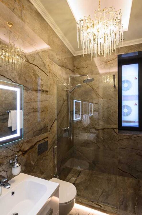 На цокольному поверсі-кінотеатр, котельня-пральня, сауна-басейн, більярдна.
