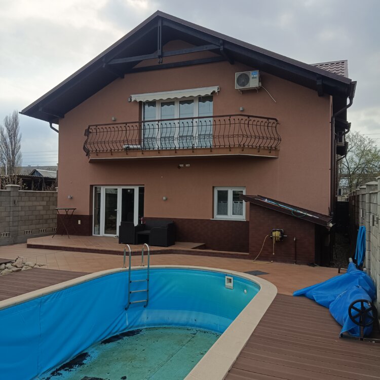 Продам Дом Кавказ г. Бендеры (район овоще базы), новый 2014 года построенный дом, монолитный -армированный, со всеми нововведениями фильтрации очищения воды, кондиционирования всех помещении (5 кондиционеров), экономии электричества и солнечными батареями и видео фиксаций как внутри так и снаружи дома, дом состоит 1 этаж: 2-е комнаты, 2-а с/у, котельная, холла в большим лестничным маршем, и большой кухней с выходом на тыльную часть дома где расположена зона барбекю крытая под отдельным помещением из витринных стекло пакетов, и большого бассейна и декоративного водопада, вся зона вокруг дома и зон отдыха застелена напольной плиткой и также дом округ обустроен дренажной системой слива т. е. при дожде и снеге у вас во дворе всегда сухо и чисто.