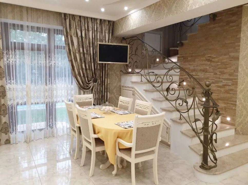 Продам двухэтажный дом в Совиньоне-2, ул. Планетная, общая площадь 202 кв. м. На первом этаже: прачечная-котельная, гостиная кухня-столовая с выходом на задний двор, с/у, кладовка, гостевая комната. На втором этаже: три спальни, с/у (хозяйская спальня с гардеробной комнатой и две детские комнаты, одна из которых с гардеробной комнатой). Второй этаж с выходом на чердак. В доме выполнен дорогой ремонт. Фасад дома украшен садом и каменным фонтаном. На заднем дворе бассейн с подсветкой с шикарными крымскими соснами по периметру. Отдельно стоящая летняя кухня (зимнего типа с двух комнатным подвалом) с печью из кирпичной кладки обрамленная бразильским гранитом меблированная и застеклена. 5 соток земли. Гараж на 2 машины. Цена 370000 у. е. Марина риэлтор 0734113720