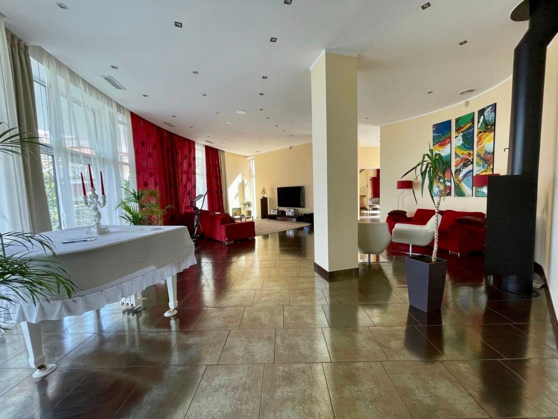 1й этаж: кухня - столовая 118 кв. м, гардеробная, санузел, спортзал.