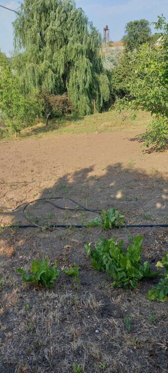 огород прямоугольный, ухоженный, в конце участка есть небольшое озеро под ивой, для души и для рыбалки.