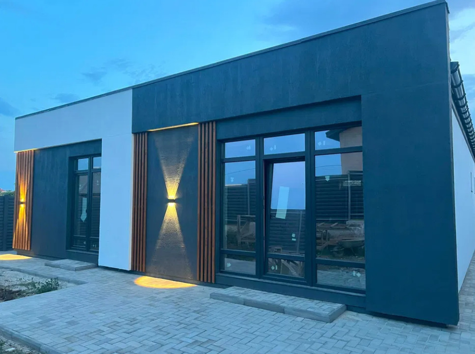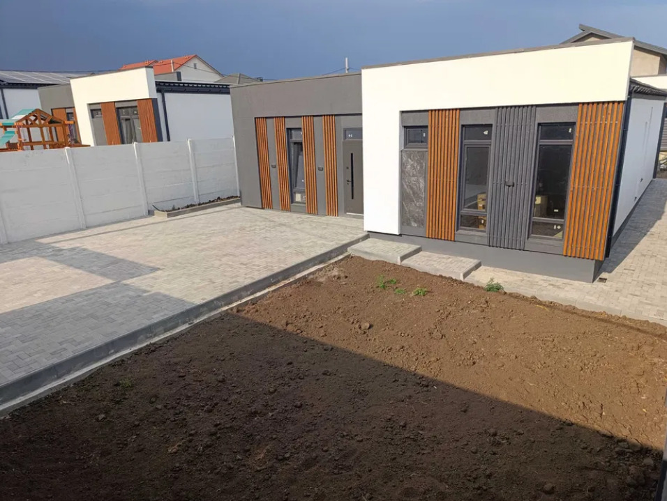 дом Червоный Хутор. Участок 4,5 соток. Дом 115 м. 3 раздельные комнаты по 17 м каждая. Кухня-гостиная 32 м. 2 с/у. Есть гардеробная, тех комната и SAFE ROOM. Дом под внутреннюю отделку. Снаружи - вид на фото.