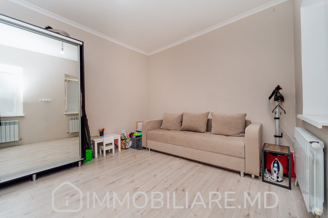 Casă, sect. Centru Vă propunem spre vânzare casă cu 2 camere și living amplasată în sect. Centru, str. George Coșbuc. Zonă cu infrastructură bine dezvoltată. Acces facil la transportul public în orice direcție a orașului. Suprafața totală de 77 mp. Casa dispune de: – GARAJ și TERASĂ; – aparat de aer condiționat; – geamuri termopan; – încălzire autonomă; – încălzire prin pardoseală; – toată mobila și tehnica necesară pentru un trai confortabil.