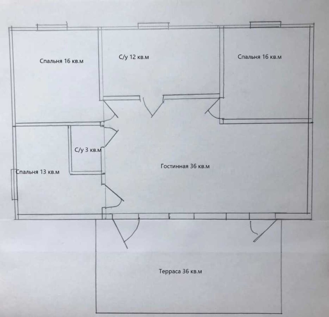 3 спальні вітальня з кухнею,