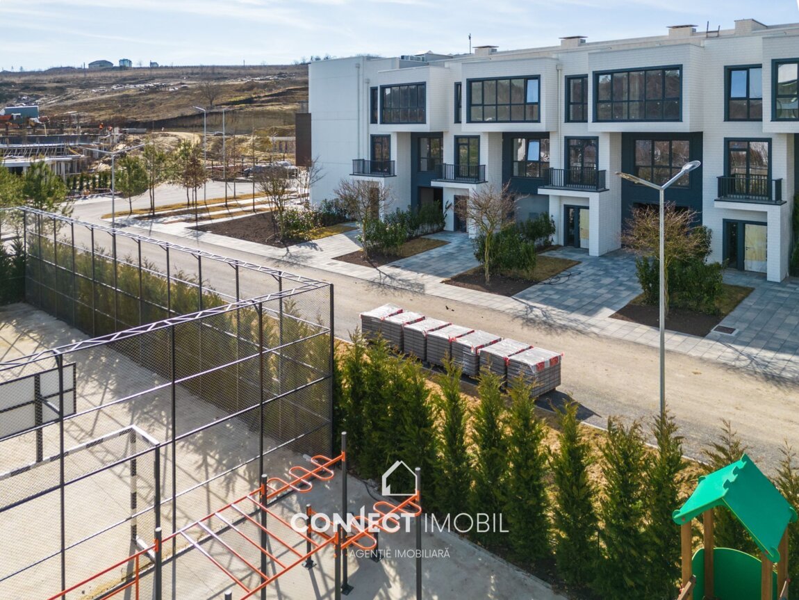 Spre vanzare Townhouse în 3 niveluri, varianta sură, cu suprafața de 186 m², amplasat în unul dintre cele mai apreciate complexe rezidențiale din Chișinău – Hora Village, sectorul Durlesti. Compartimentare bine gândită: Nivel 1: Garaj propriu cu rolete, pentru un automobil + antreu + spațiu de depozitare. Loc de parcare exterior privat, ideal pentru o a doua mașină sau vizitatori. Nivel 2: Living generos si bucătărie, birou, grup sanitar, balcon spațios. Nivel 3: 3 dormitoare separate, grup sanitar, logie și balcon. Avantaje cheie: -Construcție solidă, beton armat monolit; -Fațadă decorativă și termoizolantă (vată minerală și piatră decorativă Bastion); -Înălțimea tavanelor: 3 m; -Ferestre panoramice; -Încălzire autonomă; -Varianta gri – îți oferă libertatea de a alege și personaliza finisajele după propriul stil; -Curte amenajată, spații verzi, alee pietonală, loc de joacă pentru copii, infrastructură completă: spații comerciale si viitoare grădiniță private. Compania CONNECT IMOBIL vă ajută în procesul de vînzare-cumpărare a unui imobil, teren sa spațiu comercial, beneficiind de consultanță juridică în domeniul imobiliar și accesarea unui credit ipotecar. TOATE OFERTELE DISPONIBILE LE GĂSIȚI AICI: