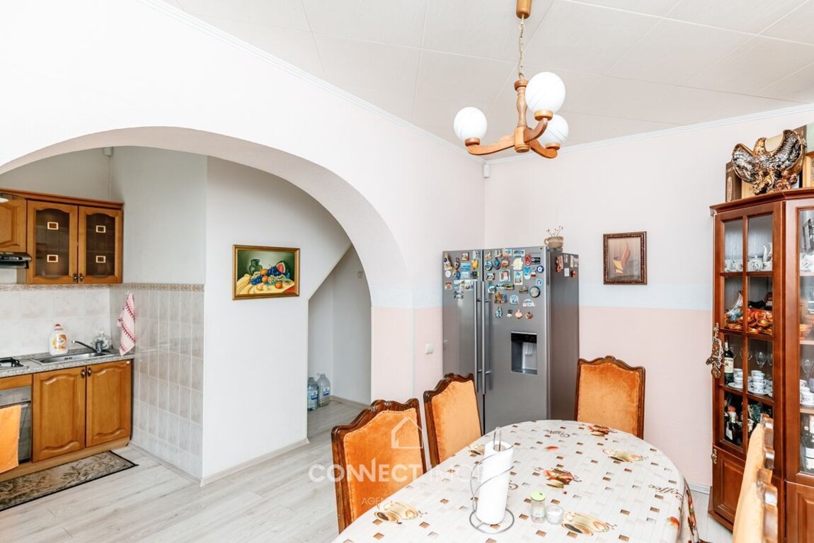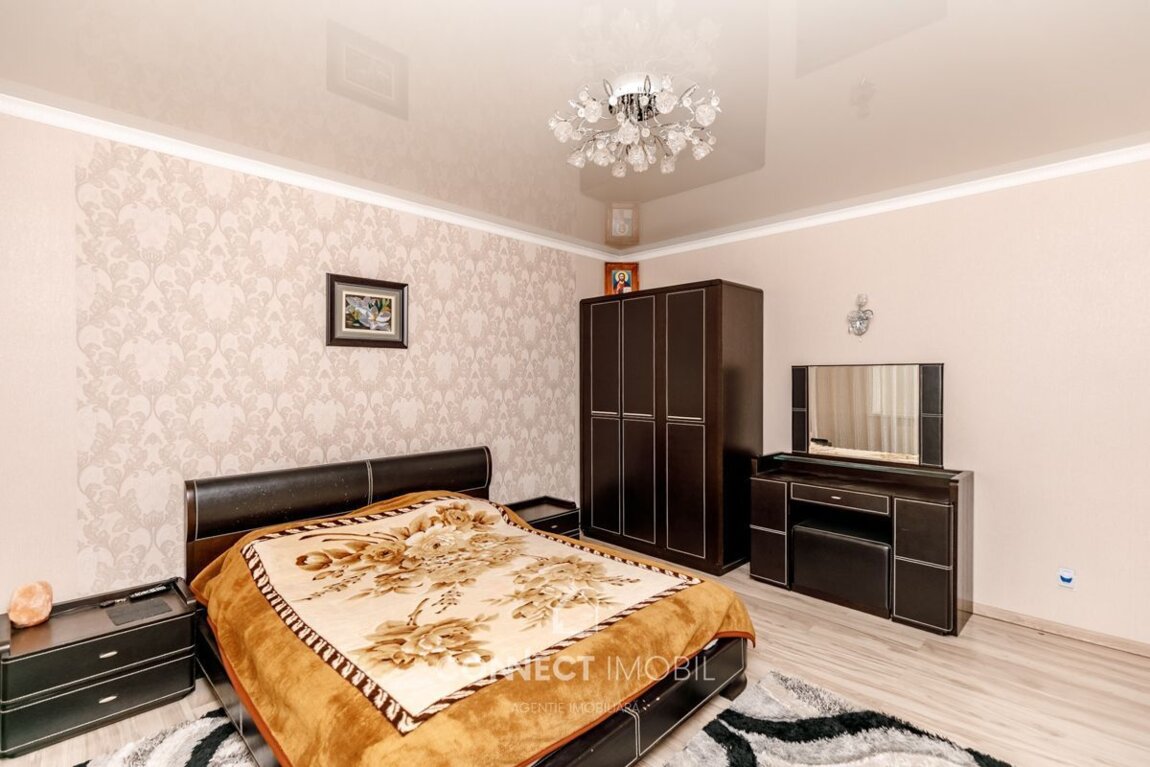 Spre vânzare casa deosebită care îmbină designul modern cu finisajele premium. Cu o suprafață totală de 210 mp și un teren generos de 6 ari această casă pe 2 niveluri oferă tot confortul și funcționalitatea de care aveți nevoie. Compartimentare: -Bucătărie cu living -2 blocuri sanitare -6 dormitoare Dotări și finisaje: *Euroreparație modernă, materiale și mobilă de calitate superioară; *Încălzire autonomă cu pardoseală încălzită pe întreaga suprafață; *Ferestre panoramice generoase, care conferă lumină naturală și o atmosferă aerisită; *Spații elegant amenajate, cu accente hi-tech și detalii de design; *Locație liniștită și apropiere de infrastructură urban; Acces facil la transportul public în orice direcție a orașului. ATENȚIE! Acum poți achita comod în rate cu doar 20% rată inițială sau prin programul guvernamental Prima Casă cu doar 10% prima rată! Compania CONNECT IMOBIL vă ajută în procesul de vînzare-cumpărare a unui imobil, teren sau spațiu comercial, beneficiind de consultanță juridică în domeniul imobiliar și accesarea unui credit ipotecar. TOATE OFERTELE DISPONIBILE LE GĂSIȚI AICI https://www.connectimobil.md/sale/kvartiry