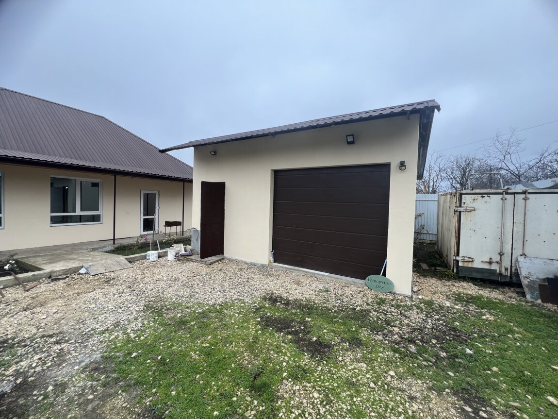 На участке стоит готовый каменный гараж с ролетными воротами