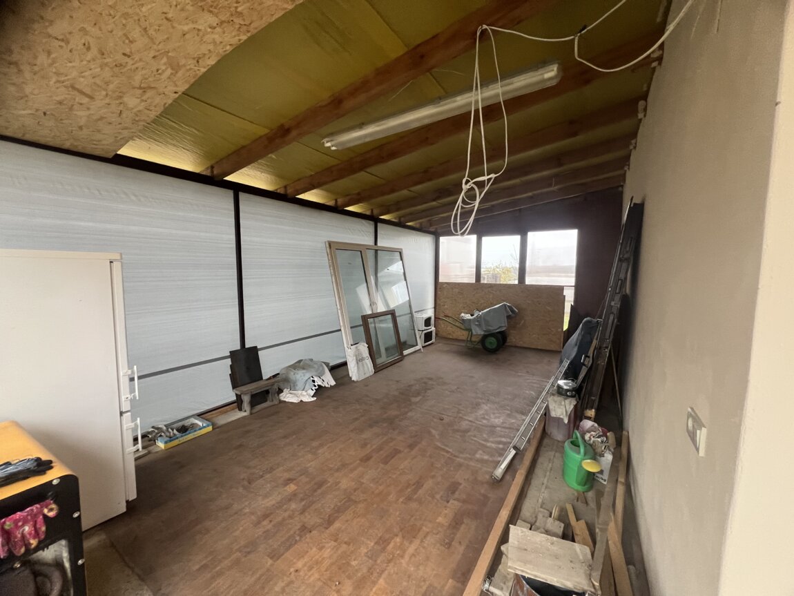 Сам дом симпатичный и распланирован в прихожую квадратной формы, большой санузел с окном и всеми коммуникационными выводами, большую кухню-гостиную с большими панорамными металлопластиковыми окнами и подготовленной рабочей стеной со всеми выводами и розетками для установки кухни. Возле кухни-гостиной есть топочная с бомбоубежищем. Так же из кухни-гостиной есть выход на утепленный просторный чердак, где можно сделать мансардный этаж.