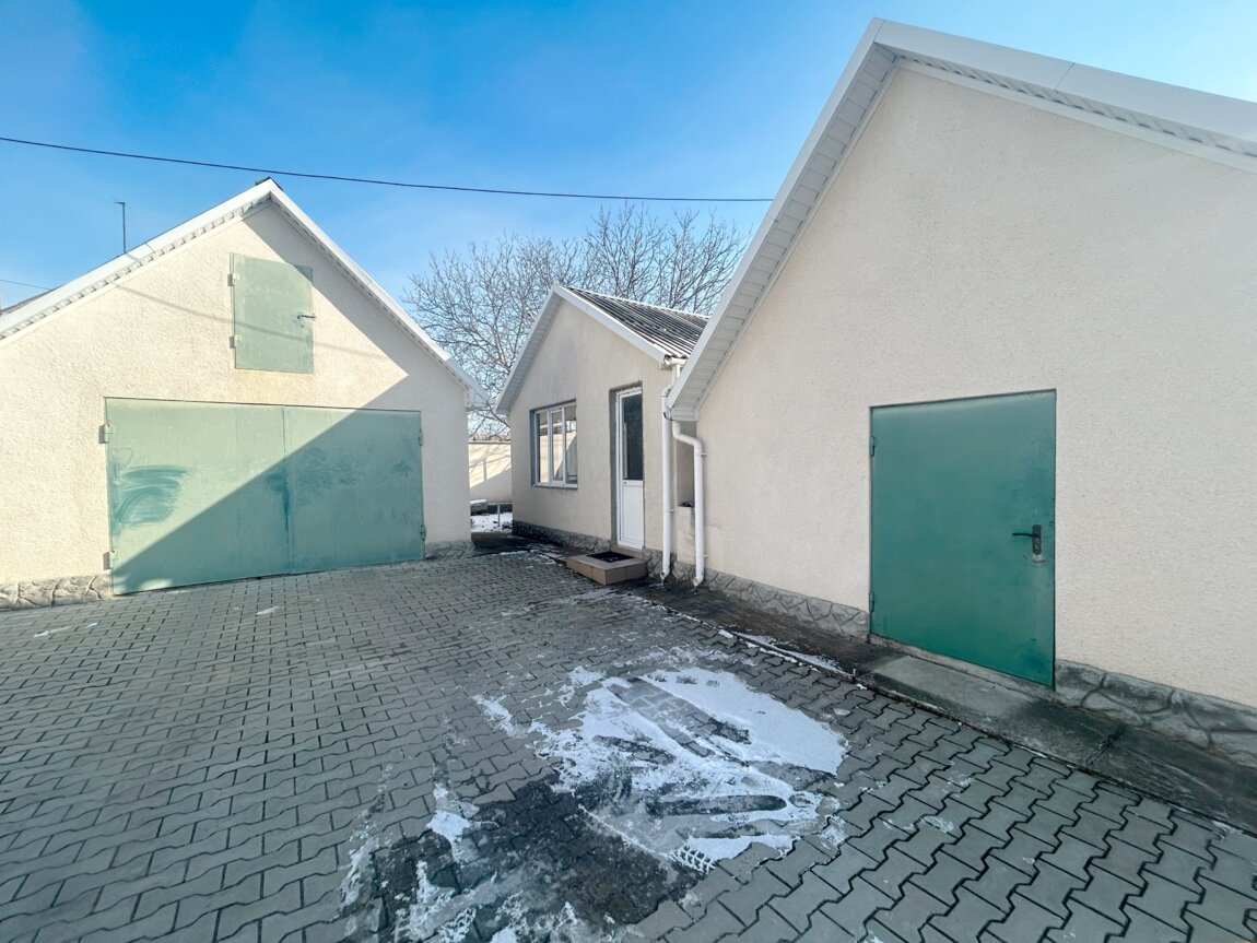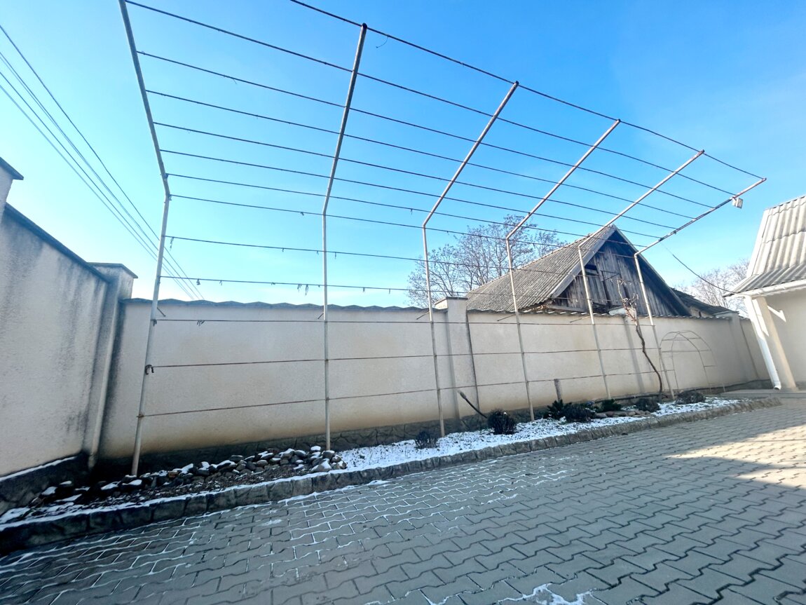 По периметру двора высокий котельцовый забор. Двор покрыт тротуарной плиткой. Капитальный гараж, беседка, погреб, летний душ и туалет, курятник, дровник полный дров (5 кубов). парник с отоплением.