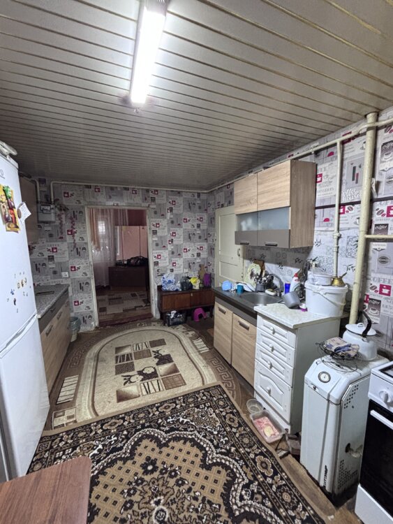 Предлагается к продаже жилой дом с участком и гаражом. Дом капитальный, одноэтажный, саманный, с котельцевой пристройкой. Планировка удобная, все помещения изолированы. Общая площадь дома 97 квадратных метров. Участок 17 соток. Дом снаружи отштукатурен, санузел утеплен. На участке расположен капитальный гараж со смотровой ямой. В доме сделан косметический ремонт, потолки - гипсокартон, электрика частично заменена. Отопление - газовое. Состояние дома - жилое.