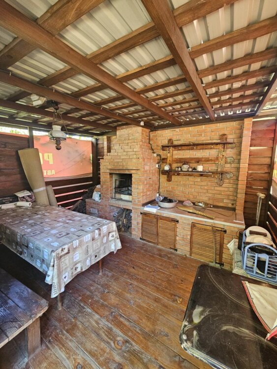 Оборудована беседка с барбекю.