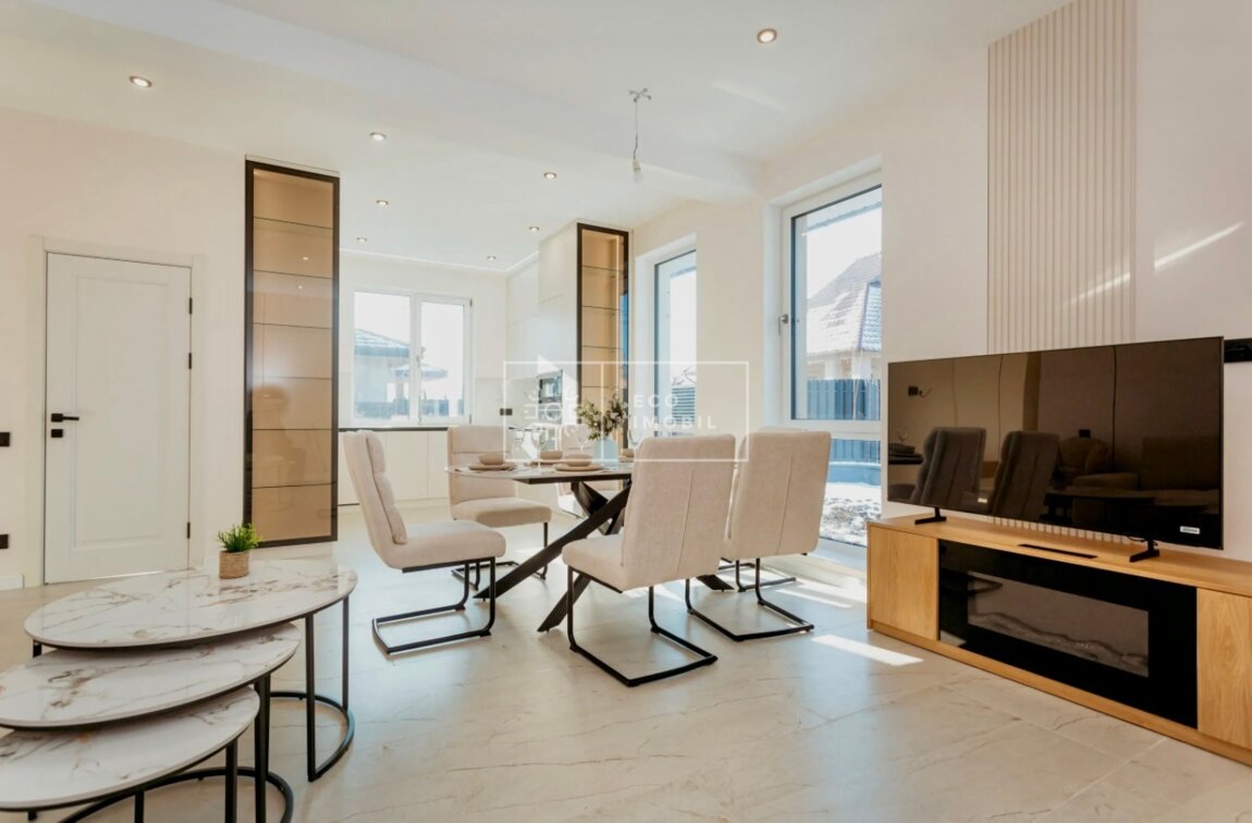 Spre vânzare casă modernă, cu trei dormitoare și living și curte generoasă, amplasată în Cojușna, str. Tineretului, la doar 15 minute distanță de la Chișinău. Imobilul dispune de o suprafață de 100 m.p., fiind poziționat pe un teren de 4.3 ari. Proprietatea dispune de euroreparație, mobilier modern, finisaje premium și iluminare ambientală discretă, living generos open-space, cu pat dublu integrat, bucătărie modernă cu electrocasnice și sisteme integrate de ultimă generație, textile fine și design minimalist, încălzire autonomă, geamuri panoramice, pardoseală caldă, curte spațioasă – ideală pentru relaxare, zonă BBQ sau amenajare peisagistică după propriul gust. Toate comunicațiile conectate. Pompă de căldură Vaillant. Compartimentare: 3 dormitoare, livingul comasat cu bucătăria, antreu, bloc sanitar separat, curte, Casa este amplasată la doar 15 minute distanță de la Chișinău, dispune de acces facil la transportul public, infrastructură dezvoltată. Продаётся современный дом с тремя спальнями, гостиной и просторным двором, расположенный в Кожушне, ул. Тинеретулуй, всего в 15 минутах от Кишинёва. Площадь дома составляет 100 кв.м, расположен на участке 4,3 сотки. Недвижимость с евроремонтом, современной мебелью, премиальной отделкой и деликатной декоративной подсветкой. Просторная гостиная open-space, объединённая с кухней, современная кухня с бытовой техникой и встроенными системами последнего поколения, изысканный текстиль и минималистичный дизайн. Автономное отопление, ...
