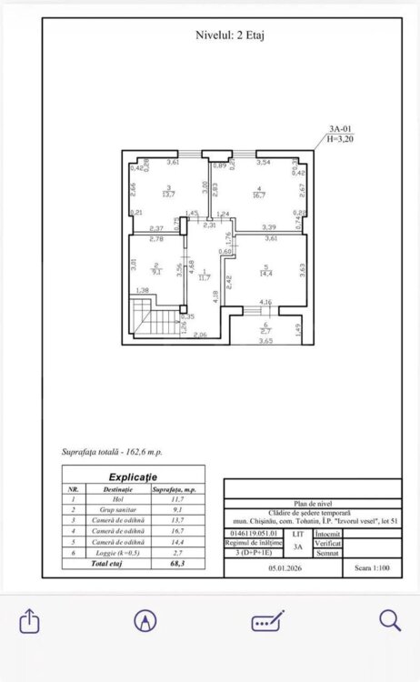 2 Nivel - 3 dormitoare, bloc sanitar, terasă.