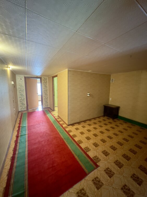2 часть - большое помещение, туалет (1 этаж) и мансардный этаж(теплый пол) с холлом и 3- мя комнатами (есть душ). (стены железобетон)