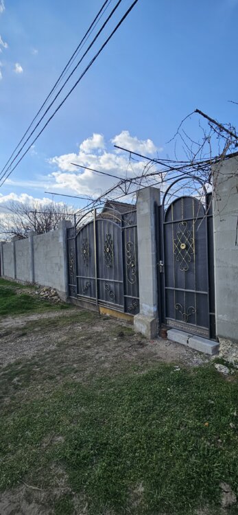 * Двор огорожен забором, установлены ворота.