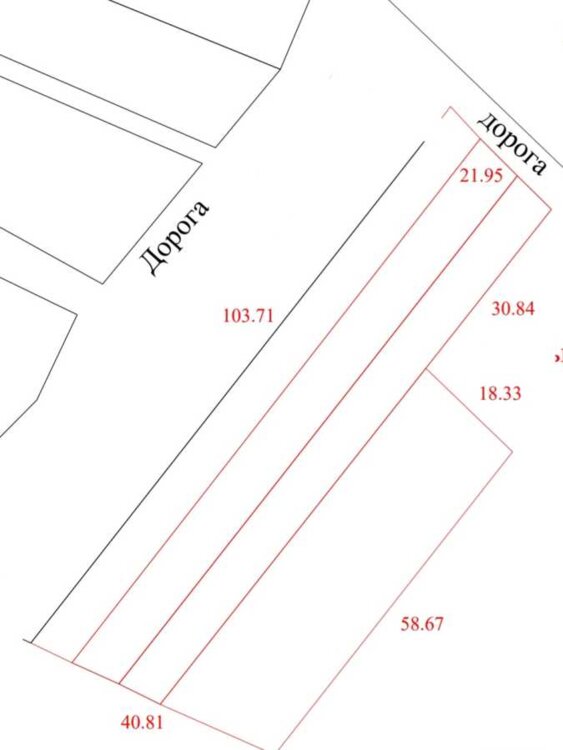 Широка по фасаду, більше ста метрів, що дає можливість забудови декількох котеджів,