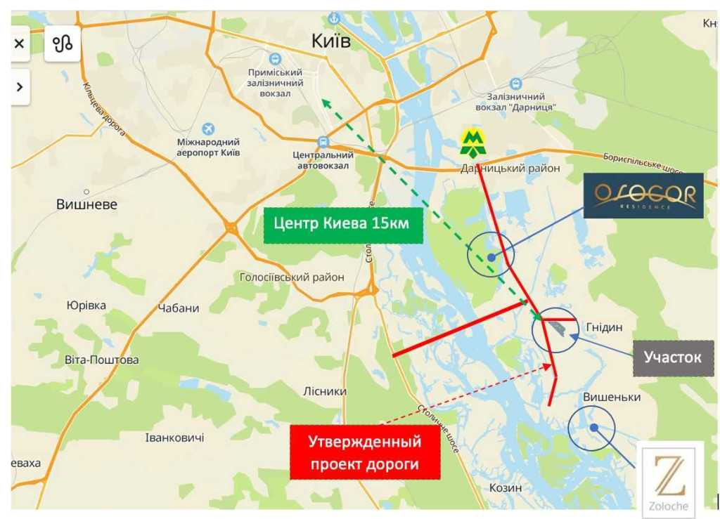 3 заезда на участок: со стороны Осокорков по дороге на Золоче и 2 заезда Гнедина