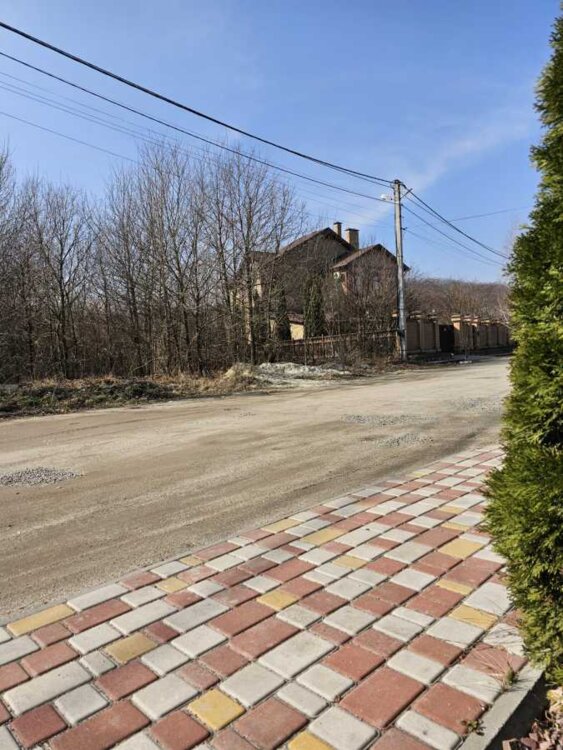 Вулиця, на якій знаходиться ділянка, майже вся забудована котеджними будинками.