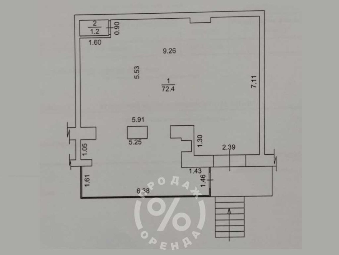 Торговий зал площею 72,4 кв. м.