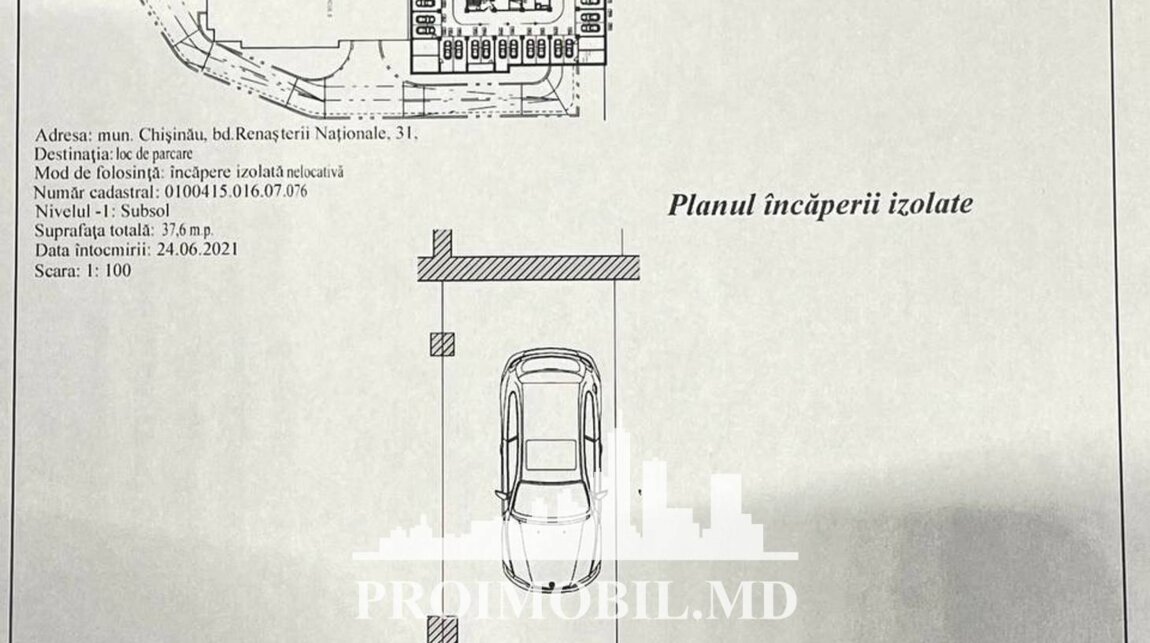 Spre vânzare 2 locuri de parcare, la nivelul -1 al unui bloc locativ nou, în sect. Râșcani, str. Renașterii Naționale. Suprafața totală de 37.6 mp. Dotări și finisaje: * Prima linie; * Prima rată 23125 €; * 3 rate trimestriale a câte 5 125 €. Este în imediată apropiere de: parc, grădiniță, școală, piață, cafenele, bancă, farmacii etc. Acces facil la transportul public în orice direcție a orașului. (d.f.) Zonă cu trafic intens pietonal și transport în orice direcție. Loc de parcare. Telefon: 3737808888 Кишинёв, Рышкановка Ренаштерий Национале Продаетсяпарковочное место для 2 машинна уровне -1 нового жилого комплекса,сект. Рышканы, ул. Ренаштерий Национале.Общей площадью37.6 кв.м.Преимущества:* Первая линия;* Первый взнос 23 125 евро;* 3 ежеквартальных платежа по 5 125 евро каждый.Рядом парк, школа, детский сад, аптека, супермаркет и т.д.Свободный доступ к общественному транспорту. (д.ф.) . Телефон: 3737808888