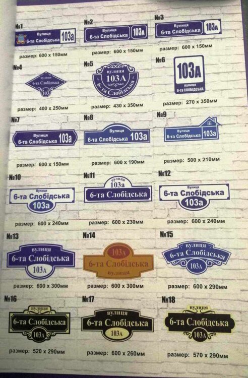 Виготовляємо під замовлення адресні таблички. Є різний дизайн. Дзвоніть і ми допоможемо Вам підібрати дизайн