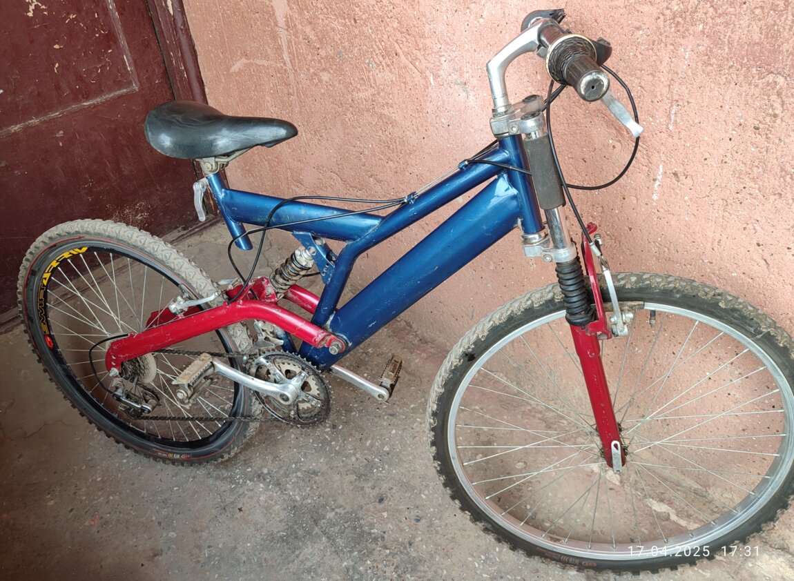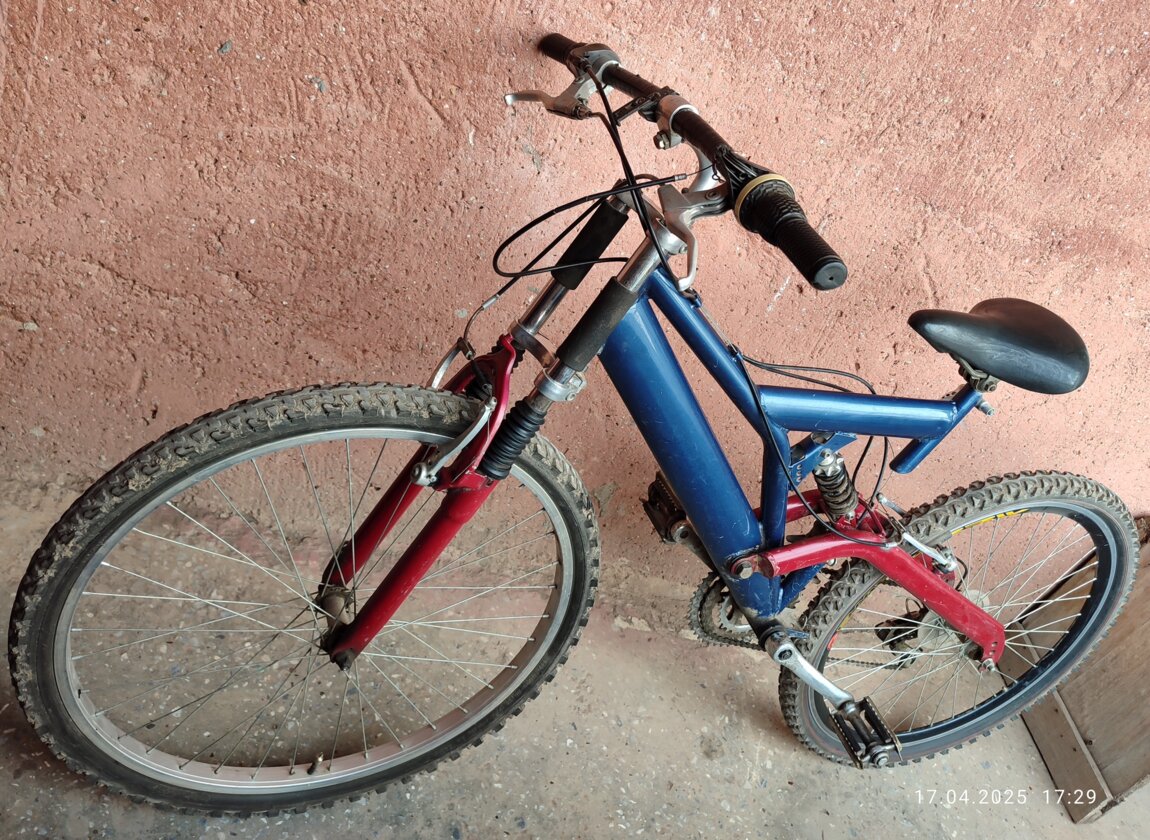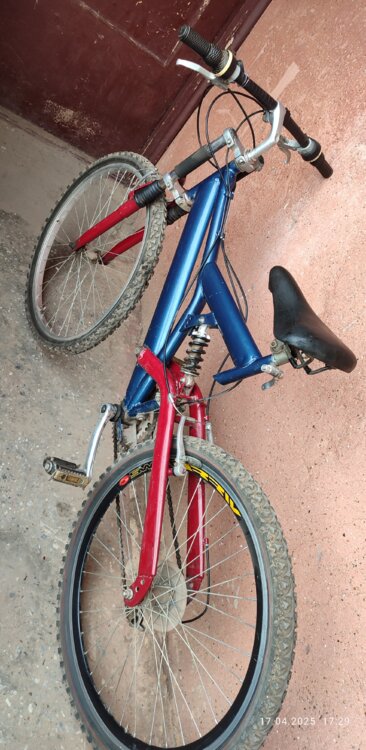 Велосипед в хорошем состоянии на амортизаторах на передней вилке и на трапеции заднего колеса.