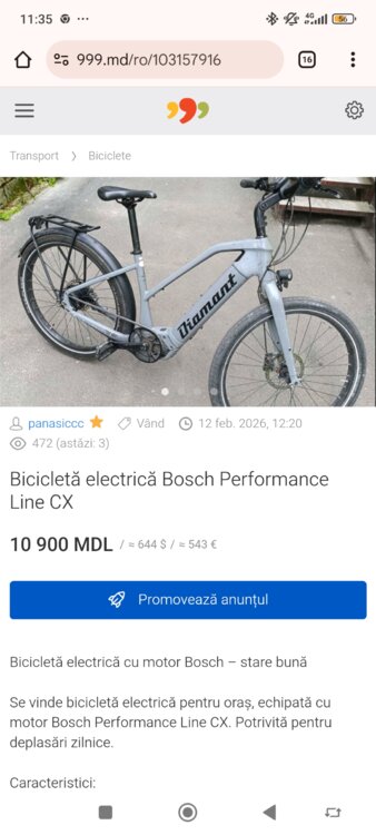 Se vinde bicicletă electrică pentru oraș, echipată cu motor Bosch Performance Line CX. Potrivită pentru deplasări zilnice.