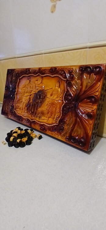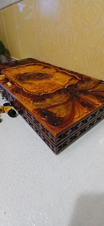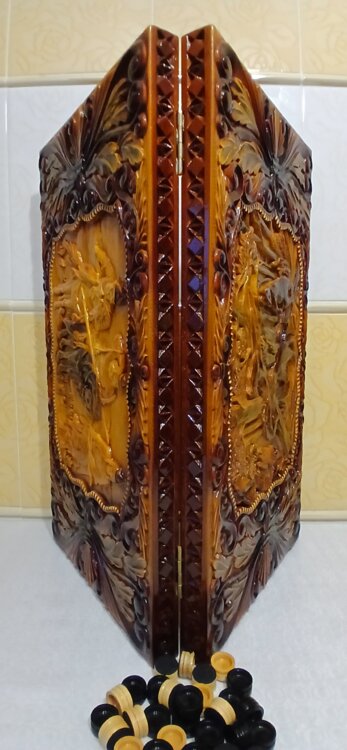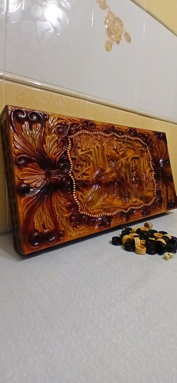 Нарды большие ручная резьба вырезанные со всех сторон и боков также и внутри нард на бортах есть резьба цветные био лаки нарды облагорожены чеканкой по дереву размер нард 70 на 70см фишки ясень дуб кубики кость. Широкий выбор в наличии выбирайте. Пишите звоните телеграм ватцап вайбер и мы вам поможем выбрать эксклюзивные нарды ручной резьбы!
