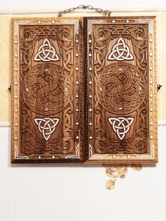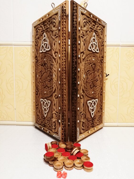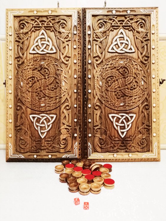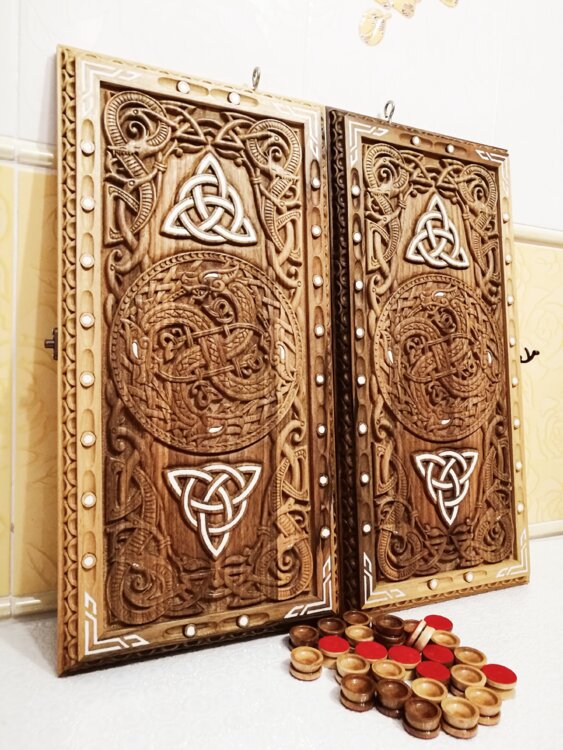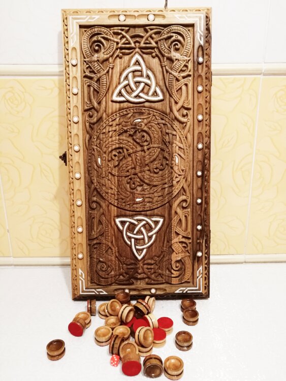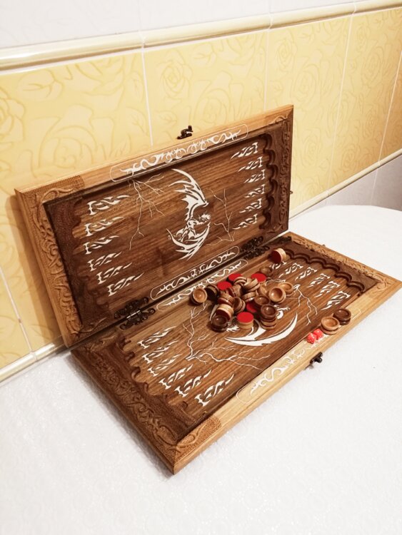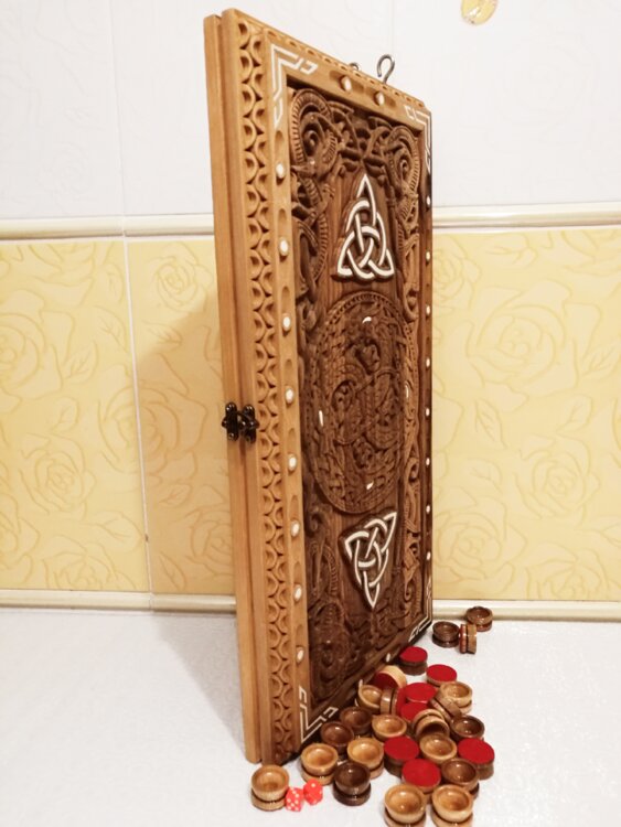 Нарды ореховые не боятся воды и солнца технология изготовления позволяет использовать всепогодно нарды ручная резьба вырезанные из Чёрного ореха со всех сторон и боков также и внутри нард на бортах есть резьба всё белое аппликация из кости нарды пропитаны воском и канифолем по стариной технологии Вечные нарды облагорожены чеканкой по дереву размер нард 57 на 57см фишки Двухцветный орех кубики кость. Поиграл и повесил на стенку украсит любой интерьер и создаст уютную обстановку а не будут пылиться в углу. Широкий выбор в наличии выбираете. Пишите звоните телеграм ватцап ваибер и мы вам поможем выбрать эксклюзивные нарды ручной резьбы!