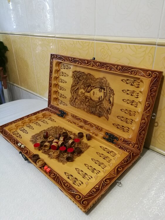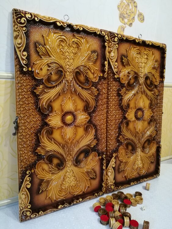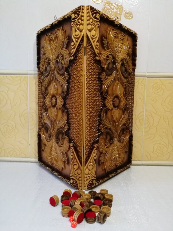 Нарды ручная резьба вырезанные со всех сторон и боков также и внутри нард на бортах есть резьба цветные био лаки нарды облагорожены чеканкой по дереву размер нард 60 на 60см фишки ясень дуб кубики кость. Поиграл и повесил на стенку украсит любой интерьер и создаст уютную обстановку а не будут пылиться в углу. Широкий выбор в наличии выбирайте. Пишите звоните телеграм ватцап вайбер и мы вам поможем выбрать эксклюзивные нарды ручной резьбы а не дешевую поделку вырезанные на станке выдающую за ручную резьбу!