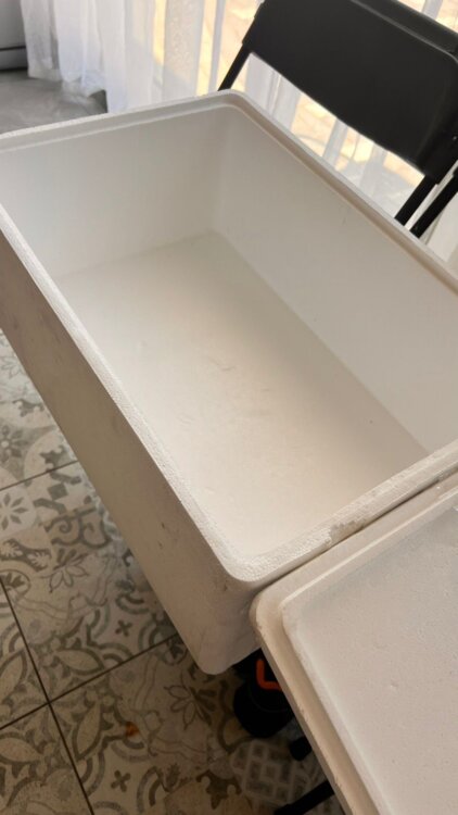 Изготовлен из пенопласта объёмом 48 литров, с крышкой. Максимальная допустимая нагрузка — 10кг