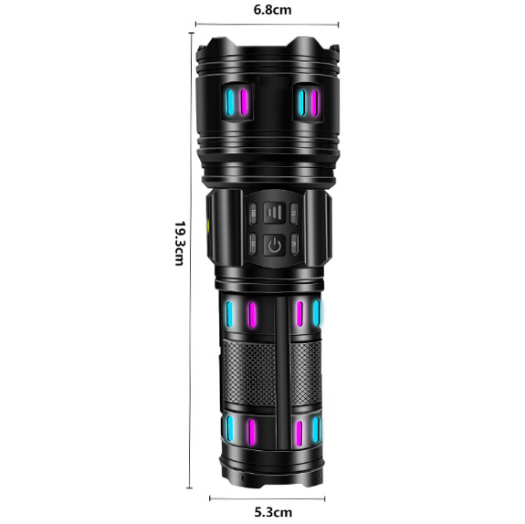 фонарь, мощный фонарь, 18000 люмен, zoom фонарь, регулируемый зум, фонарь с зумом, LED zoom torch, фонарь с фокусом, фонарь с режимами, режим SOS, режим стробоскоп, зарядка Type-C, USB-C фонарь, аккумуляторный фонарь, power bank функция, Power Bank фонарь, 4×18650, 8×18650, аккумуляторный LED фонарь, фонарь с индикатором заряда, металлический корпус фонаря, влагозащищённый фонарь, пылезащитный фонарь, флуоресцентный фонарь, корпус металл, зарядка USB, ручной LED фонарь, охотничий фонарь, тактический фонарь