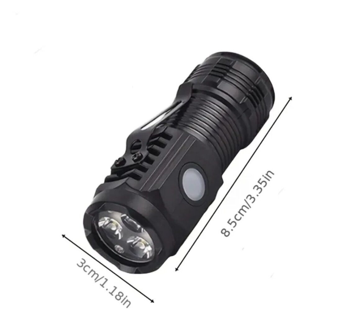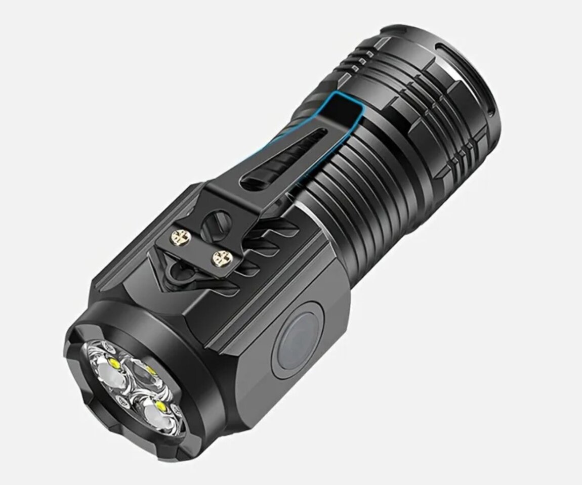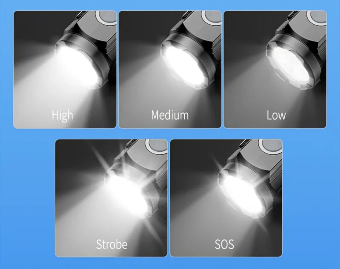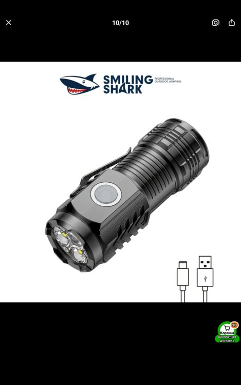 Компактный размер, пластиковый корпус, холодный белый свет. Пять режимов: мощный-средний-экономный-строб-SOS. Переключение режимов короткими нажатиями, выключение зажатием. Час непрерывной работы. В комплекте зарядный кабель.