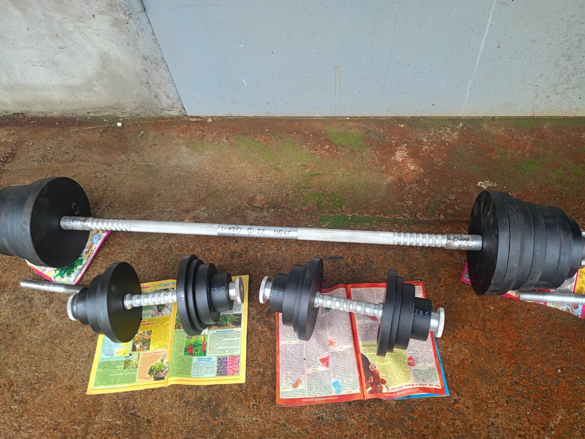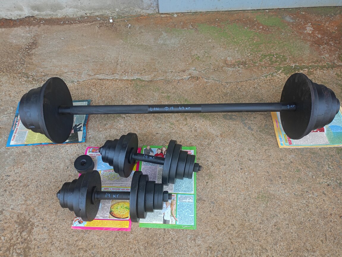 Продам штанги гантели. Вес и длина указаны на фото.