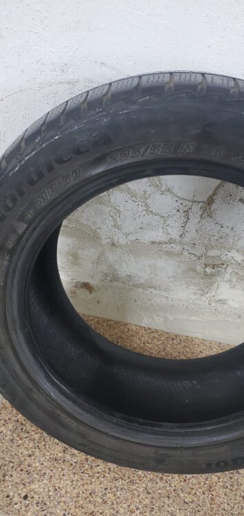 Продам зимние шины (4 штуки), б/у, размер R16, 205/55, низкопрофильная. Цена 150 рублей (1 шт).