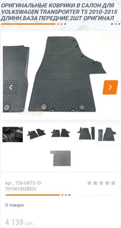 Оригинальные передние коврики для Volkswagen Transporter T5 (2003–2015)