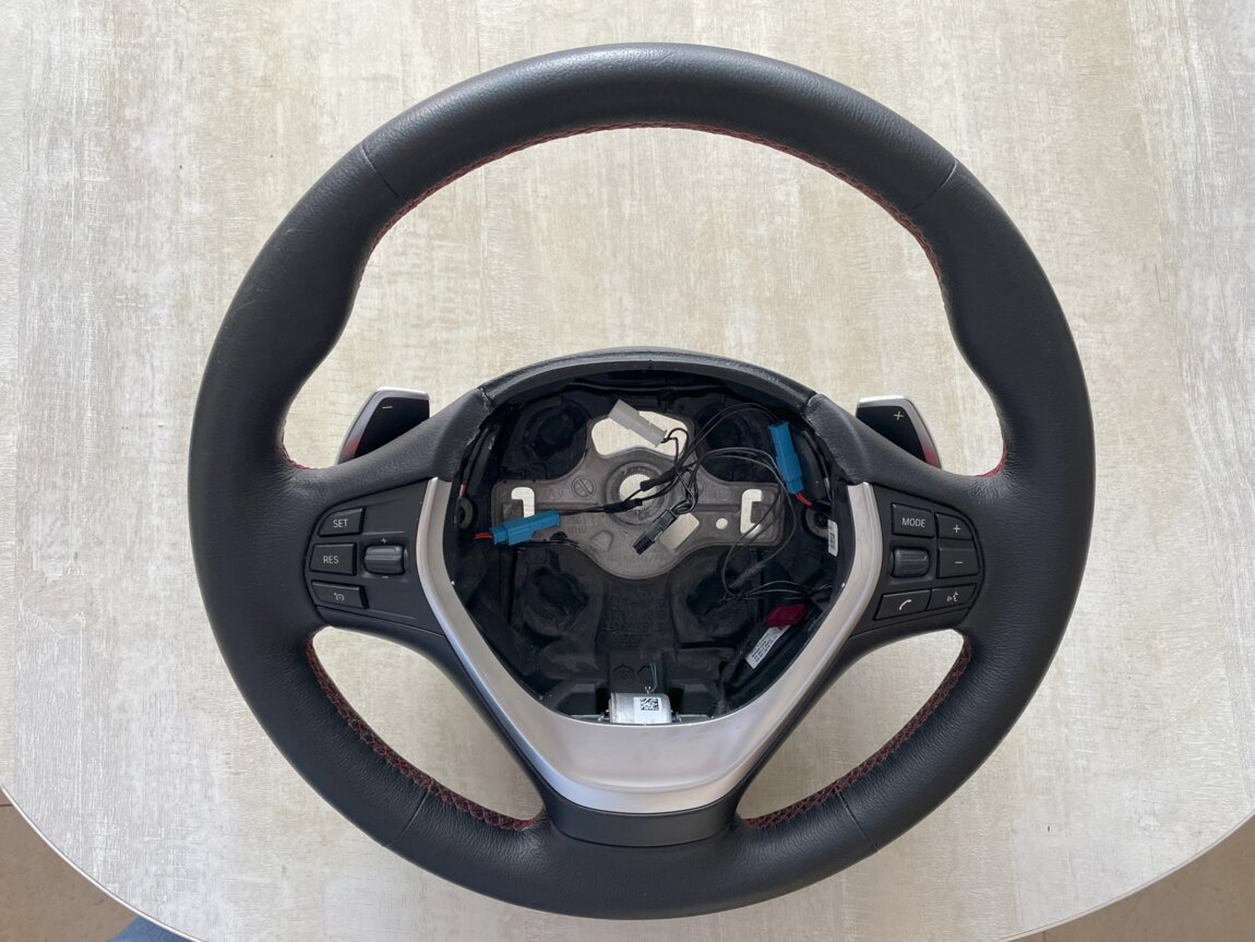 Руль снят с F30 lci 2018 (usa) с лепестками и подушкой. Снят аккуратно, без проколов в нижней части руля.