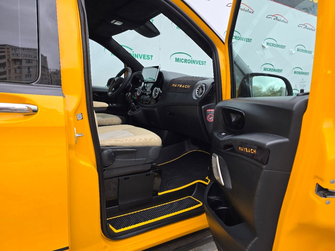 Autoturism confortabil și bine echipat, pregătit pentru oraș și drumuri lungi. La interior găsești aer condiționat, geamuri electrice și închidere centralizată, plus servodirecție și volan reglabil atât pe înălțime, cât și pe lungime pentru o poziție de condus perfectă. Volanul multifuncțional, sistemul audio și calculatorul de bord fac fiecare deplasare mai plăcută și mai practică.La capitolul siguranță, Mercedes Vito Maybach TVA dispune de sistem de frânare antiblocare (ABS) și controlul tracțiunii (TCS/ASR/TRC), airbag șofer, pasager și laterale, dispozitiv antifurt și proiectoare de ceață pentru vizibilitate sporită. Anvelopele all-season asigură aderență bună pe tot parcursul anului.
