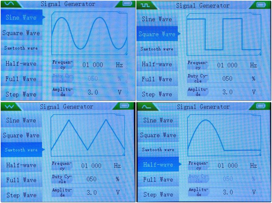 Режимы измерения: максимум, минимум, среднее, действующее значение, пиковое значение, частота, период, скважность