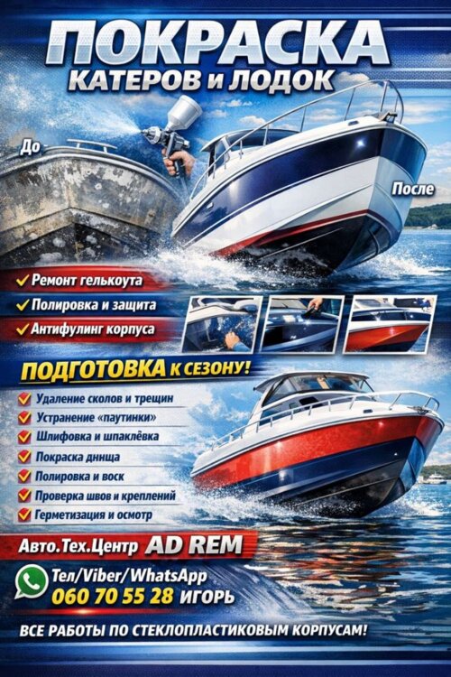Производим основные работы по катерам со стеклопластиковым корпусом (GRP / fiberglass), с акцентом на корпус перед летним сезоном.