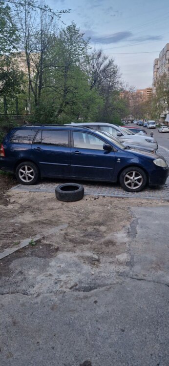Toyota Corolla универсал, поколение E120/130 (2000-2007), двигатель 2.0, темно-синий цвет. Автомобиль с пробегом.