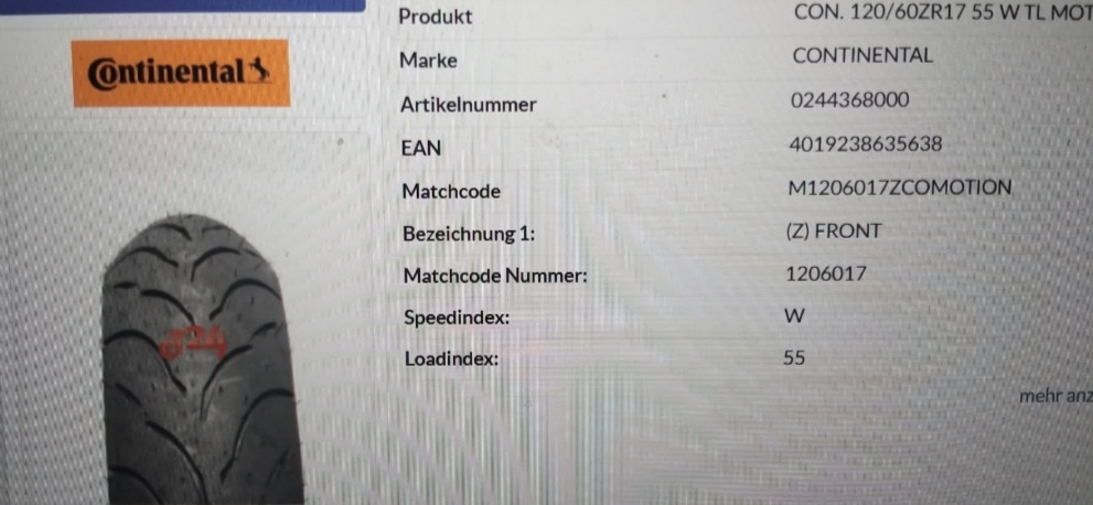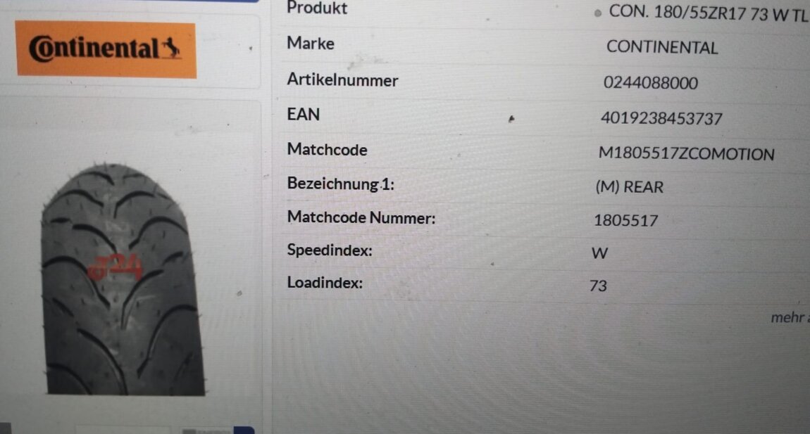 Продам комплект новой резины Continental 120*60*17R, 180*55*17R