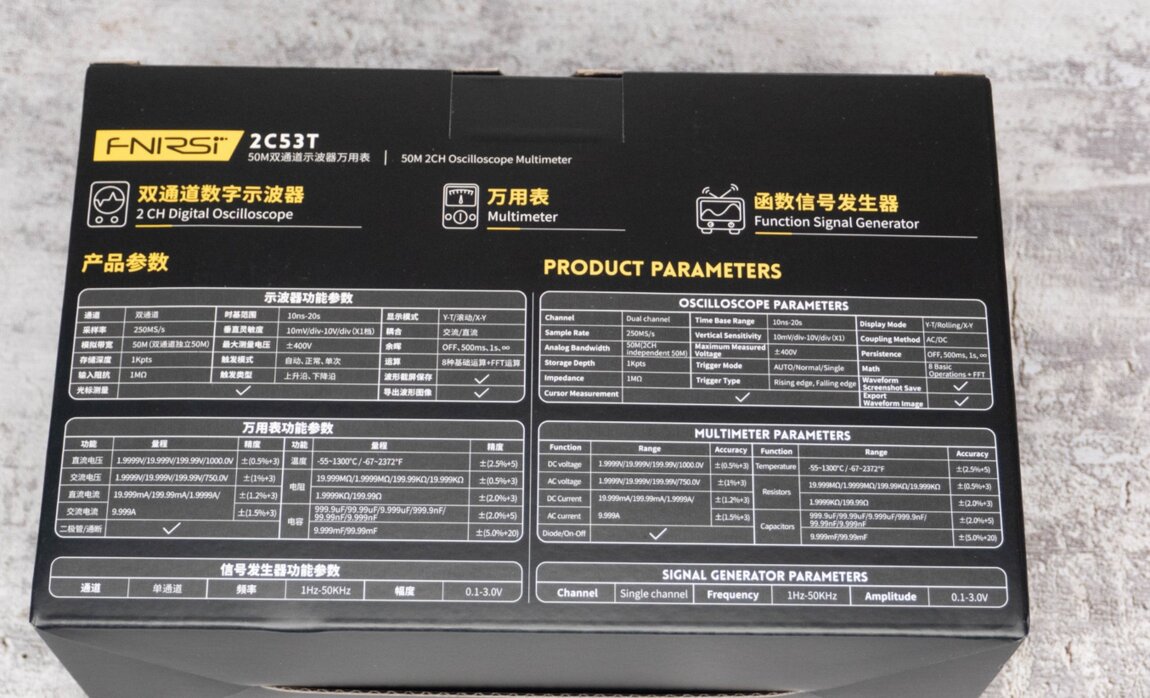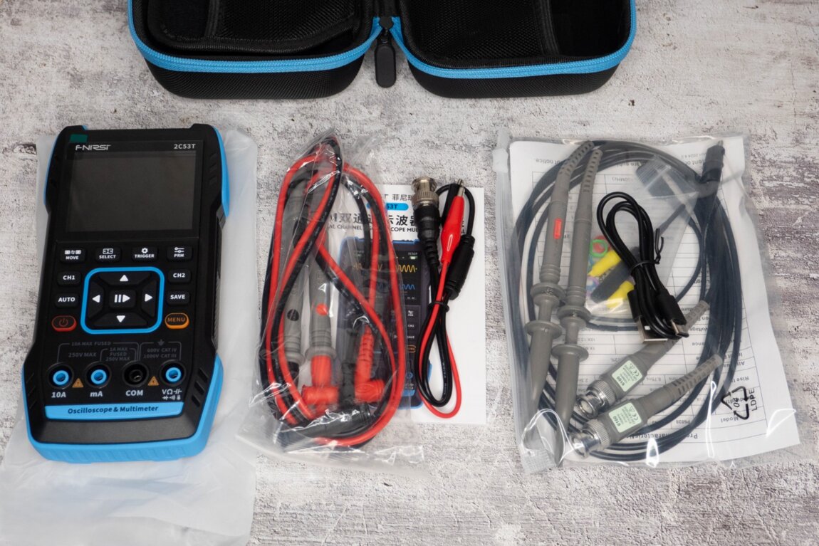 Многофункциональный прибор Fnirsi 2c53t, 3 в 1 объединяет в себе 2-х канальный осциллограф, генератор сигналов и мультиметр.
